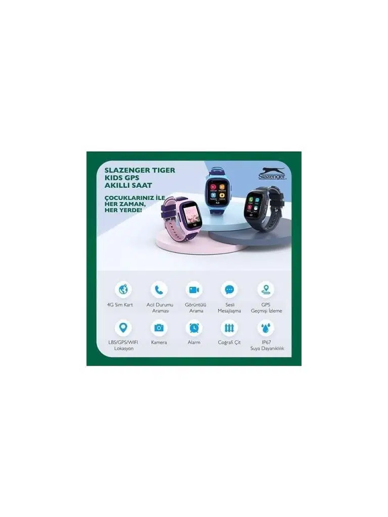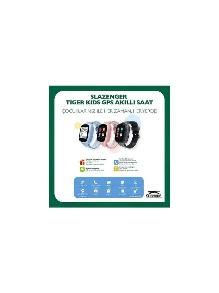Slazenger’in yenilikçiakıllı çocuk takip saatiile çocuğunuzun güvenliği her zaman sizin kontrolünüzde! Bu model,2 yıl Türkiye garantisive kaliteli malzemeleriyle uzun ömürlü bir kullanım sunar.Mika kasave yumuşaksilikon kordonsayesinde saatin ergonomik yapısı, çocukların rahat bir şekilde takmasını sağlar.