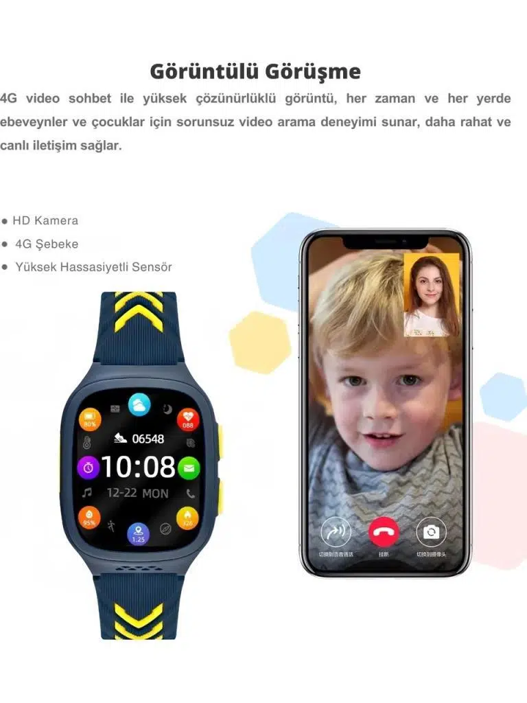 1.4 inçIPS ekranve 240x240 piksel çözünürlükle net bir görüntü sunan bu saat,tam laminasyon 2.5D dokunmatik panelile kullanıcı dostu bir arayüze sahiptir.RTOS işletim sistemive güçlüASR3603S işlemci(832MHz) ile hızlı ve kesintisiz bir performans sağlar. Çocuğunuzla her zaman iletişimde kalmak içinAPP veya VoLTE üzerinden 4G görüntülü görüşme,sesli aramavemesajlaşmaözelliklerini kullanabilirsiniz.